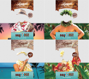 このサイネージでは、カメラから顔の位置情報を読み取り、それに合わせて画像がコラージュするといったインタラクティブ性が取り入れられている。コラージュされる画像のウクレレやアロハシャツは全4種類あり、気軽にハワイアン気分を味わうことができる。また、このサイネージには実際にコラージュした画像を入力したメールアドレスに転送するシステムが導入されている為、家族や友人などと共有して楽しむことができる。