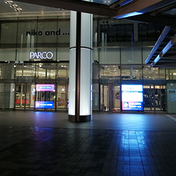 浦和パルコの正面入口ガラス自動ドアの両サイドに、店内から屋外に向けて透過型LEDを設置しました。 高輝度な透過型LEDにより、店内への外光を遮ることなくインパクトのあるプロモーションが可能となりました。 正面入口は浦和駅に対面するロケーションのため、駅から出て来る人々に動きと明るさを印象...