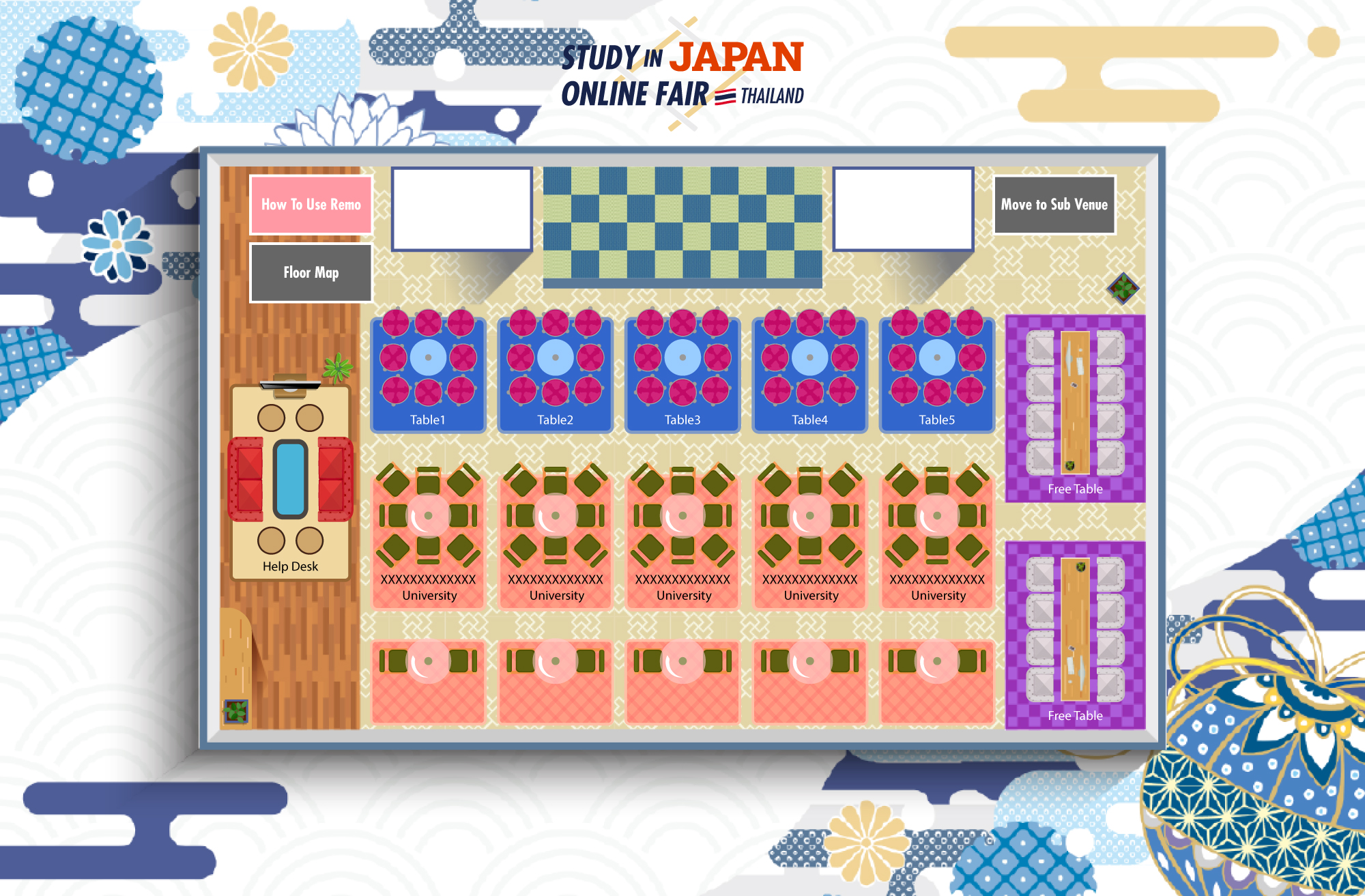 リアルイベントの実施が難しい現在、 参加者同士のコミュニケーションを目的としたイベントの実施には オンラインカンファレンスツール『Remo』が最適です。 弊社では、企業様や大学様主催による合同就活説明会や個別相談会、 研究発表会の実施サポートを行っております。 今回、タイの高校生向...